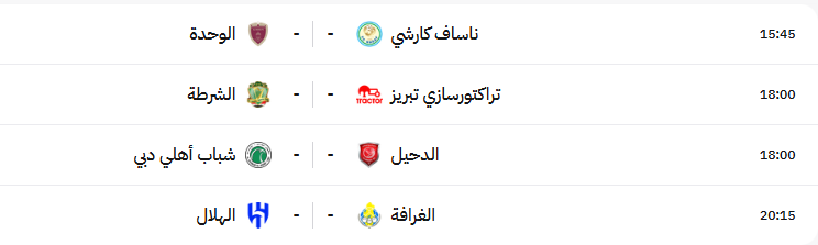 جدول أبرز مباريات الجولة الرابعة من دوري أبطال آسيا للنخبة: