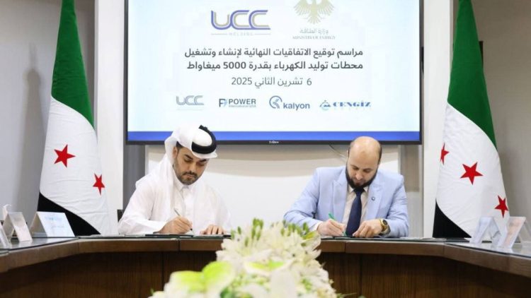 وقعت وزارة الطاقة السورية،اليوم الخميس، اتفاقيات نهائية مع تحالف شركات دولية بقيادة شركة “أورباكون القابضة” (UCC Holding)، وهي شركة قطرية دولية رائدة، لإنشاء أربع محطات لتوليد الكهرباء ومشاريع طاقة شمسية باستطاعة إجمالية تبلغ 5000 ميجاواط. وتعتبر الوزارة هذا المشروع من أكبر المشاريع الاستراتيجية في قطاع الطاقة منذ عام 2011.