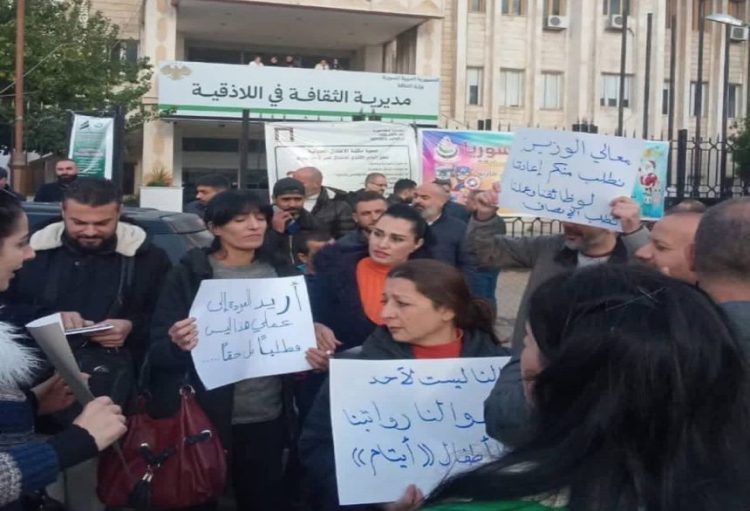 شهدت مدينة اللاذقية تصاعدًا في موجة الاحتجاجات العمالية، حيث نفّذ عدد من الموظفين المفصولين اعتصامًا أمام مبنى المركز الثقافي