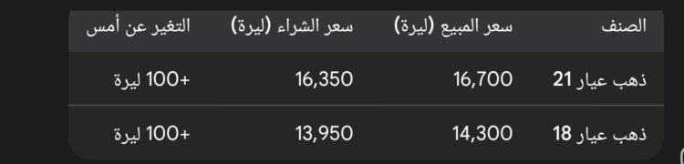 ملاحظة: الأسعار الواردة في هذا التقرير تعتمد على النشرات الرسمية المتوفرة حتى ساعة إعداده، وقد تختلف قليلاً بين المحافظات أو لدى محلات الصاغة.