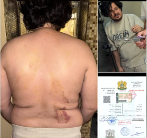 وفي منشور على حسابه في “فيسبوك”، نشره بعد مغادرته البلاد، عرض الزعبي صوراً توثق آثار الضرب على وجهه وجسده، مشيراً إلى أنه تعرّض لـ الاعتداء بعصي كبيرة وأسلاك معدنية وأخمص بنادق، إضافة إلى اللكمات والركلات التي تركت إصابات واضحة.