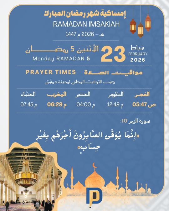رئيسي إمساكية شهر رمضان المبارك يوم الاثنين 23 شباط آخر تحديث 2026/02/22 10:20م أكمل القراءة أهلا رمضانإمساكية رمضانإمساكية شهر رمضانالحلويات الرمضانية شارك FacebookTwitterWhatsAppFacebook MessengerTelegram
