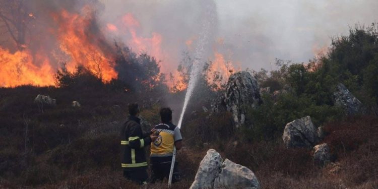 ووفقاً لـ”المرصد السوري لحقوق الإنسان”، لا تزال النيران مشتعلة في أحراج منطقة حب نمرة غربي المحافظة.